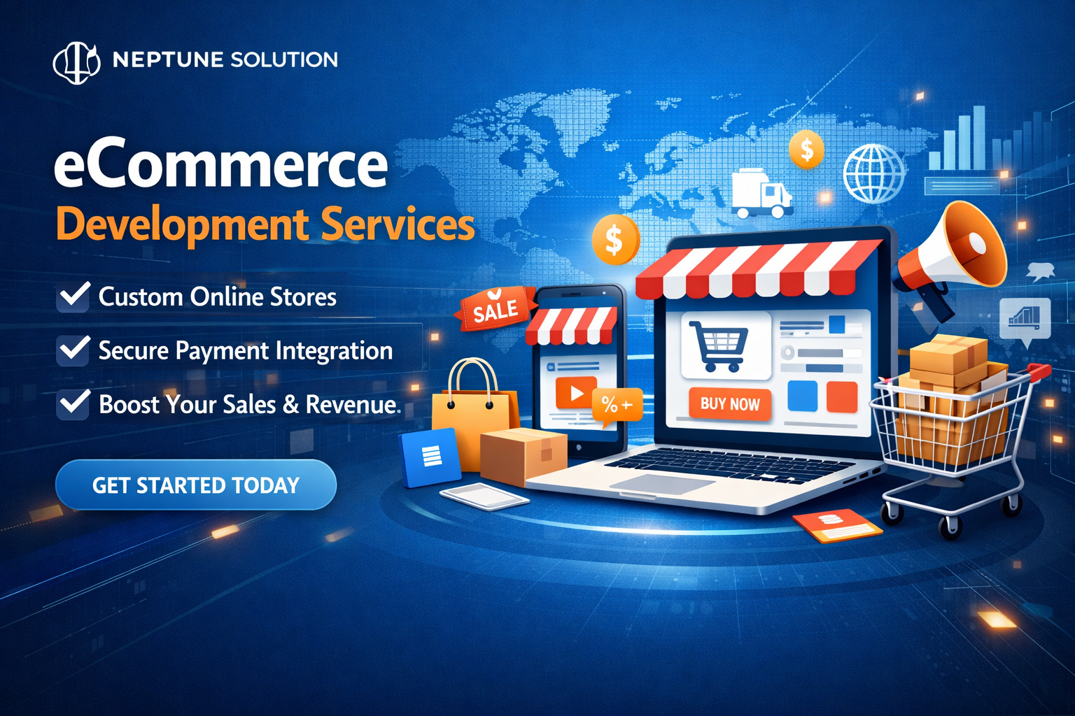 At Neptune Solution, we leverage modern technologies to build scalable, secure, and high-performance digital solutions. Our expertise includes web development using HTML5, CSS3, JavaScript, PHP, Laravel, React, and Node.js, along with mobile app development for Android, iOS, Flutter, and React Native. We deliver robust ecommerce platforms, custom CRM systems, and tailored software solutions that streamline business operations. With SEO-friendly architecture, cloud integration, API development, and strong security practices, we ensure reliability and growth. By continuously adopting emerging technologies, we help businesses stay competitive and future-ready.